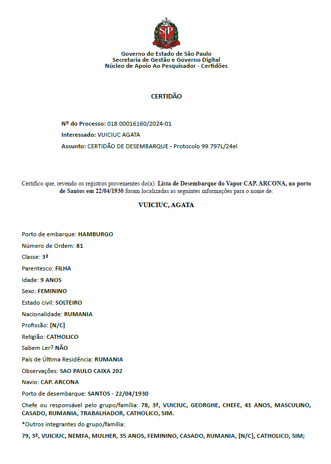 Certidao passageiros navio